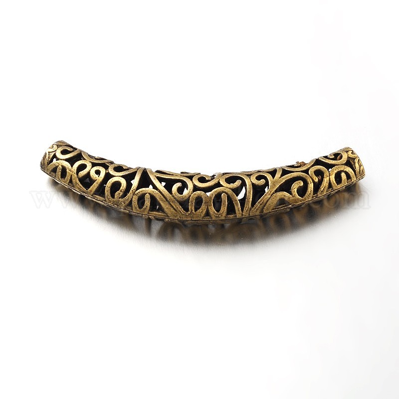 • Античная Бронза Тибетский стиль сплава полые шарики изогнутые трубки, изогнутые трубочки бусины лапши, без кадмия, без никеля и без свинца, античная бронза, 66x12x10 мм, отверстие : 5.5 мм