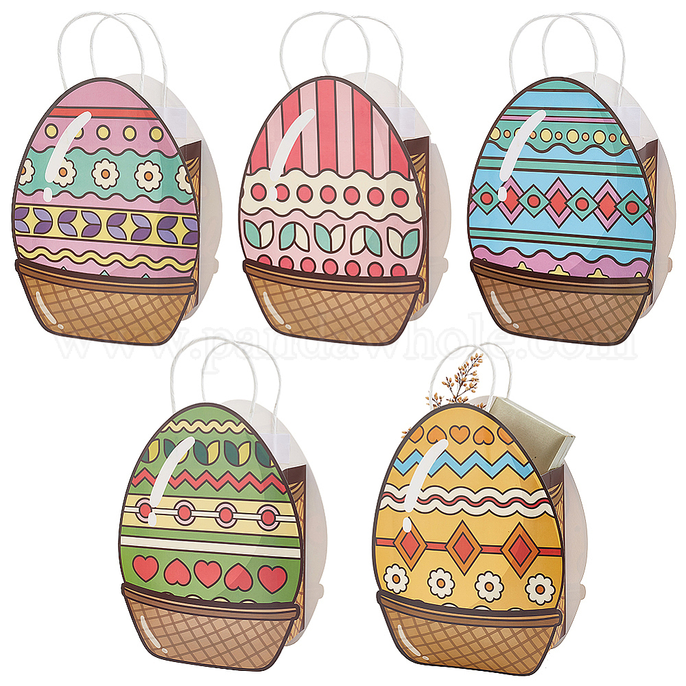 5шт 5 цвета пасхальные яйца в форме бумажных пакетов, пакеты для сладостей с ручками, для хранения подарков (02N4XZ)