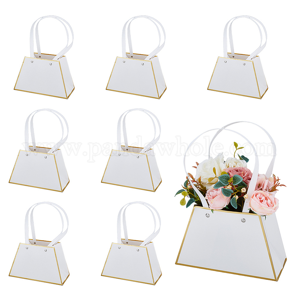 • Белый Бумажные пакеты для упаковки букетов, сумки для покупок, цветочные свадебные подарочные пакеты с ручками, трапециевидные, белые, 29.5 см