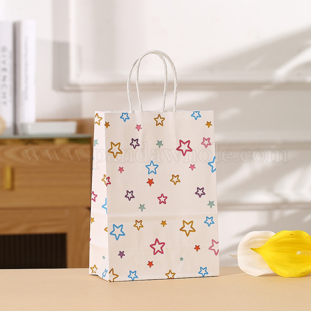 Подарочные пакеты из цветной бумаги с принтом звезд и ручками, сумки для покупок, прямоугольные