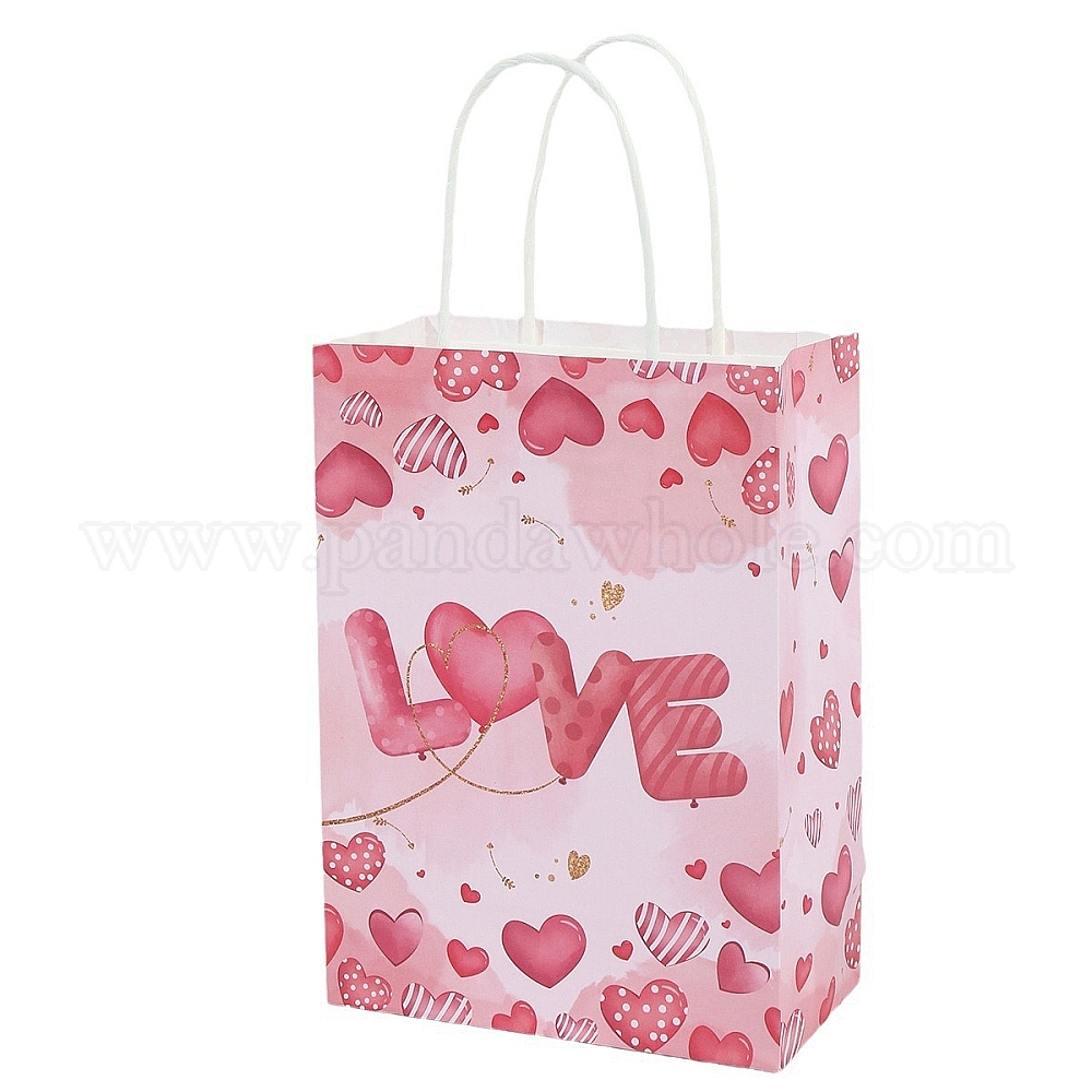 • Светло-Вишневый День святого Валентина бумажные подарочные сумки с принтом в виде сердечек, с ручками, сумки для покупок, прямоугольные, светло-вишневый, 15x8x21 см