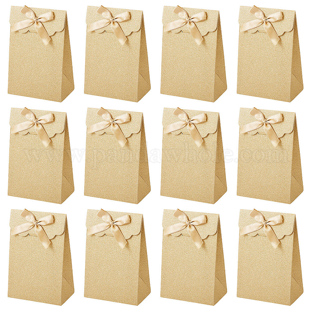 • Серебро Прямоугольные подарочные пакеты из блестящей бумаги, Конфетница с бантом, украшенная лентой, на день рождения, свадьба, серебряные, 7.9x4.6x11.8 см