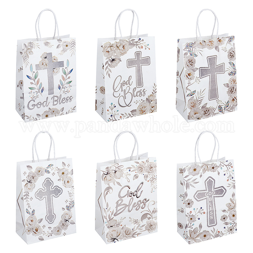 • Белый 12шт. 6 стили, подарочные сумки из крафт-бумаги, благослови вас Бог, сумки с ручками, прямоугольник с крестом, белые, 15x7.9x21 см, 2 шт / стиль
