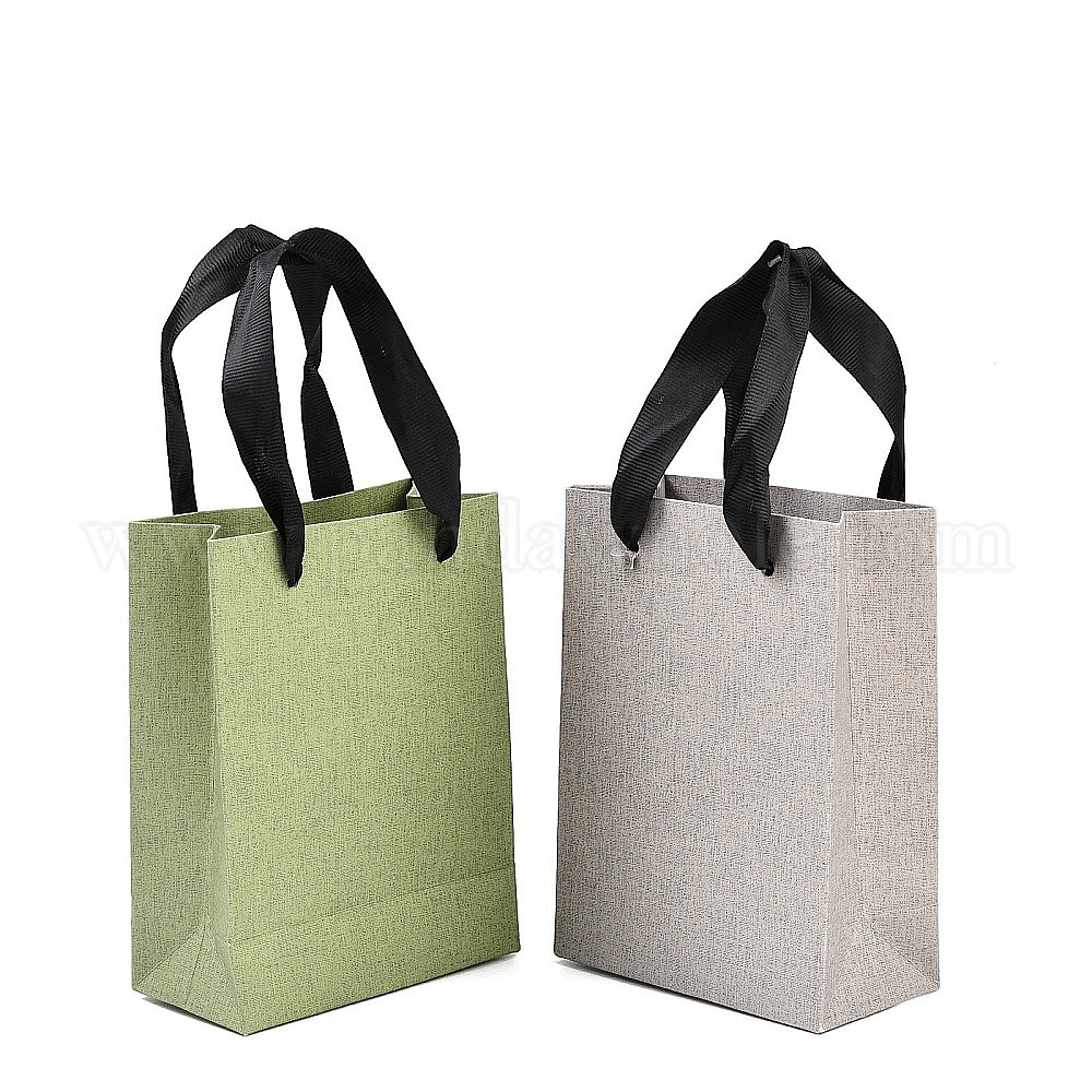 Бумажные подарочные пакеты с ручками из черной нейлоновой ленты, на свадьбу день рождения детский душ, переработанные пакеты, прямоугольные