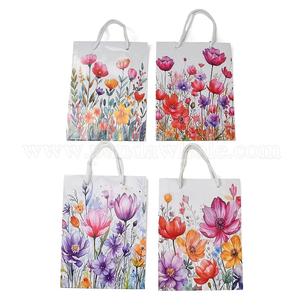 Бумажные подарочные пакеты с цветочным принтом и ручками., сумки для покупок, прямоугольные (03BGSQ)