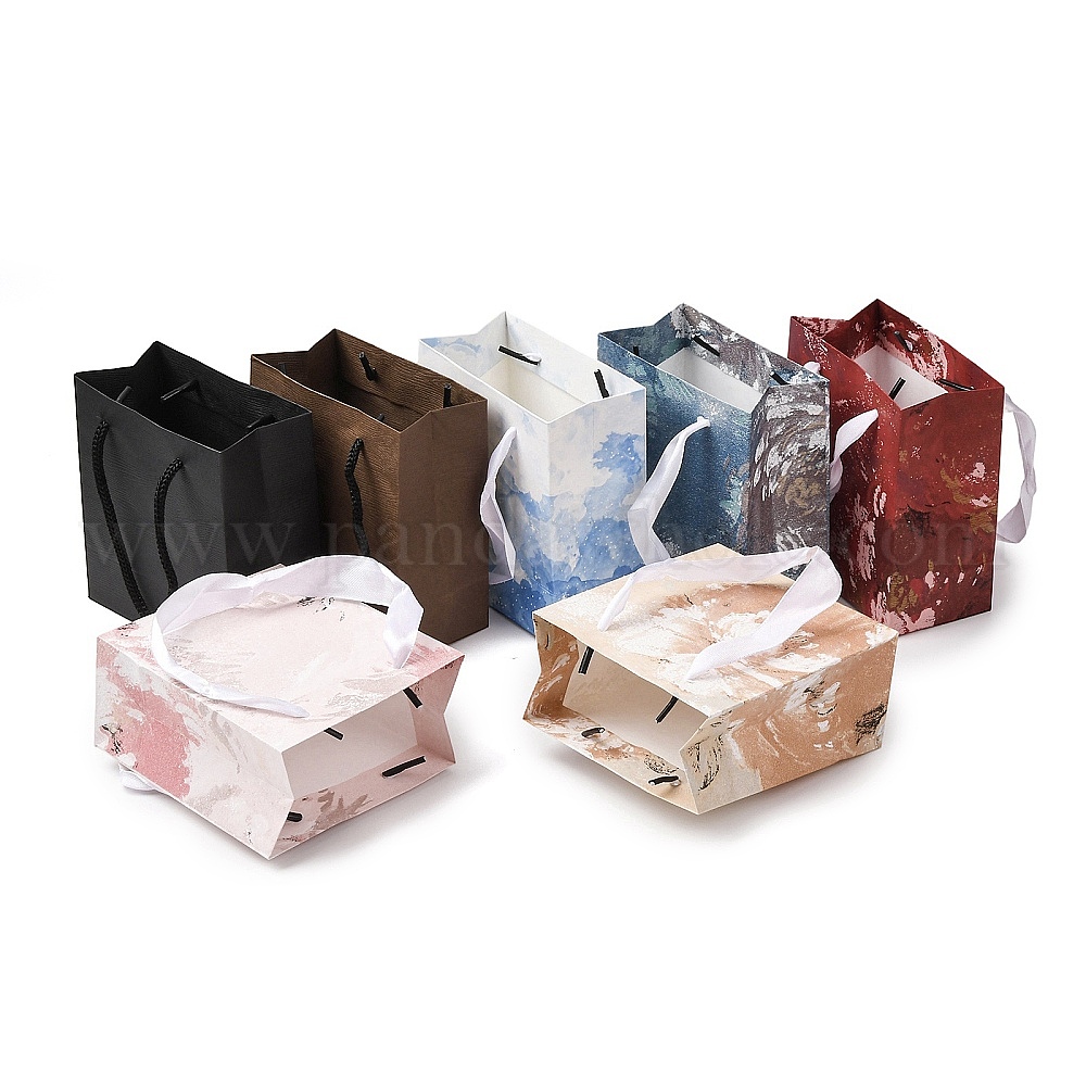 Прямоугольные бумажные подарочные пакеты с ручками из веревки/ленты