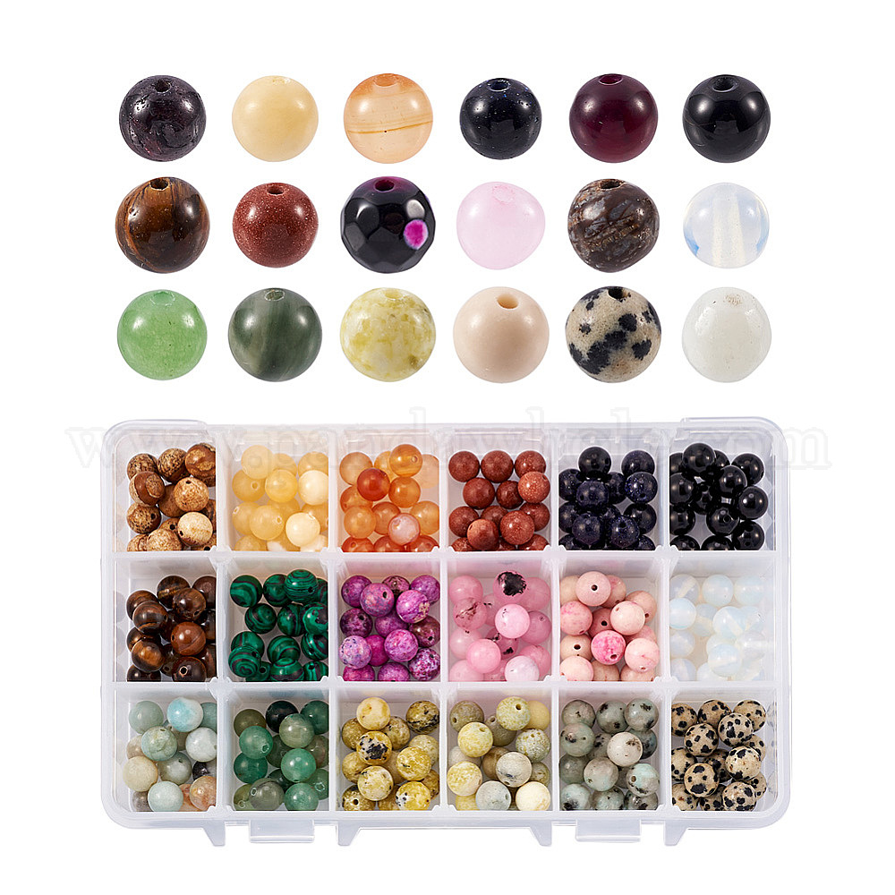 270шт 18 цвета натуральные и синтетические драгоценные камни бусины, круглые