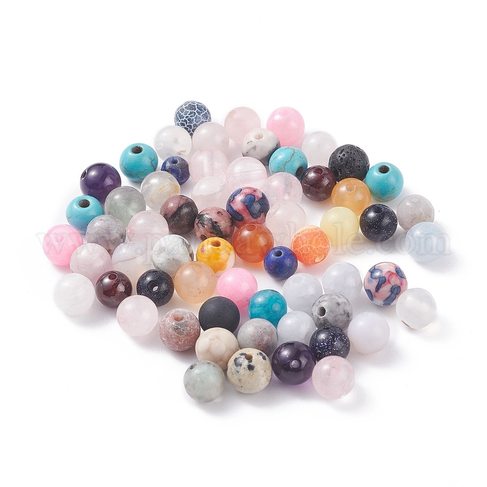 • Смешанные камни Гальванизированные бусины из натуральных и синтетических смешанных драгоценных камней, круглые, 5.5~7 мм, отверстие : 1~1.5 мм, Около 300 шт / 100 г