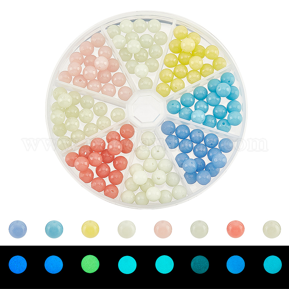 128шт 8 цвета синтетические светящиеся камни круглые бусины, окрашенные, светится в темноте