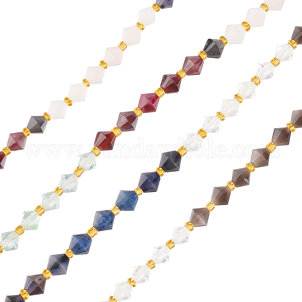 1 нити из натуральных смешанных драгоценных камней, со стеклянным бисером и эластичной хрустальной нитью, двухконусные