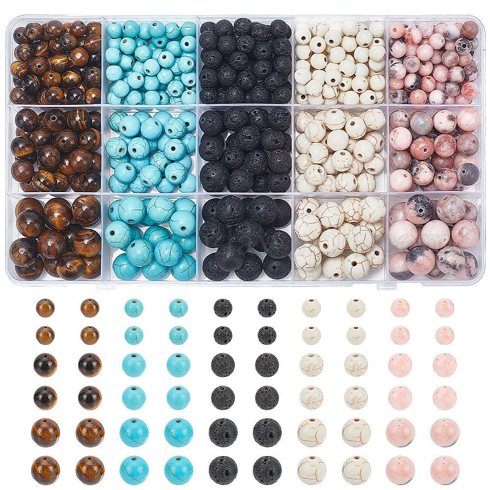 500шт 15 стили наборы бусин из смешанных драгоценных камней, круглые