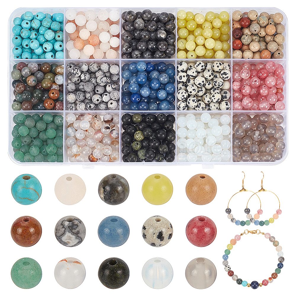 750шт. 15 стили смешанные драгоценные камни baeds, круглые, смешанные окрашенные и неокрашенные