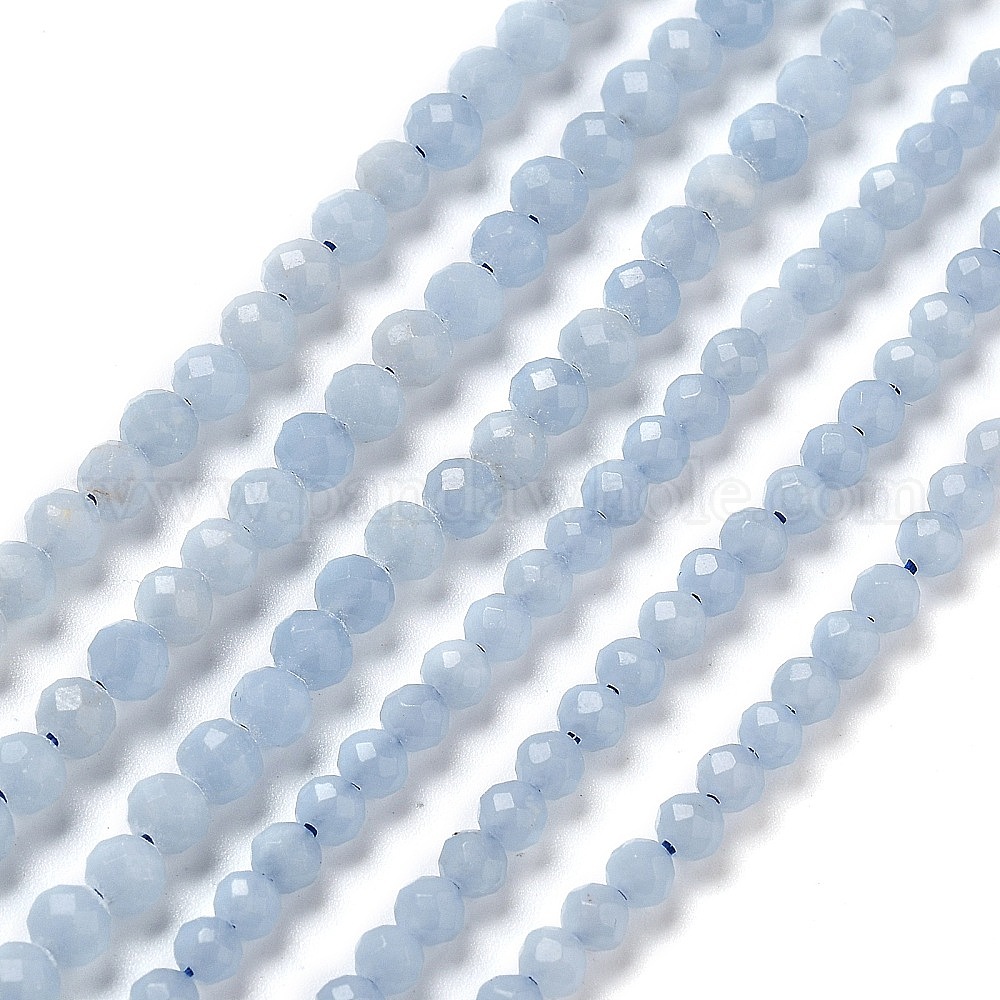 • Ангелит Натуральные ангельские бусины, граненые, круглые, 3 мм, отверстие : 0.8 мм, около 128 шт / нитка, 14.96'' (38 см)