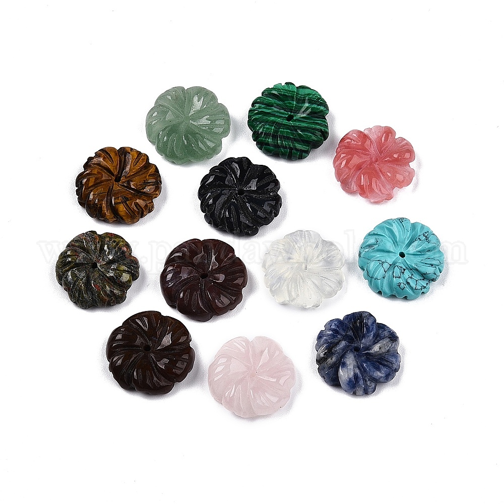 • Смешанные камни Резные бусины из смешанного натурального и синтетического камня, смешанные окрашенные и неокрашенные, цветок, 18.5~20.5x5~6.5 мм, отверстие : 1 мм