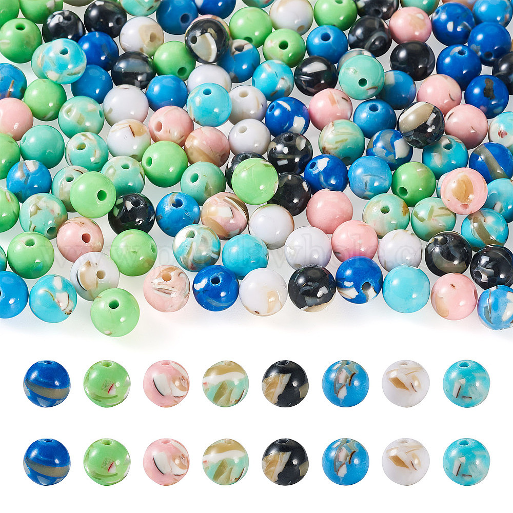 8 цветные собранные бусины из синтетического камня и ракушек-трохусов, окрашенные, круглые