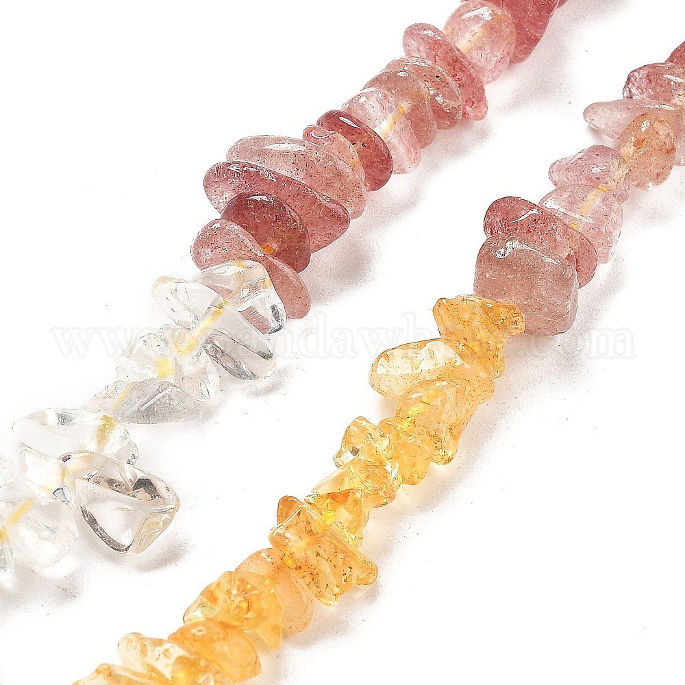 Нити бусин из натурального кварцевого кристалла, клубничного кварца и цитрина, чип