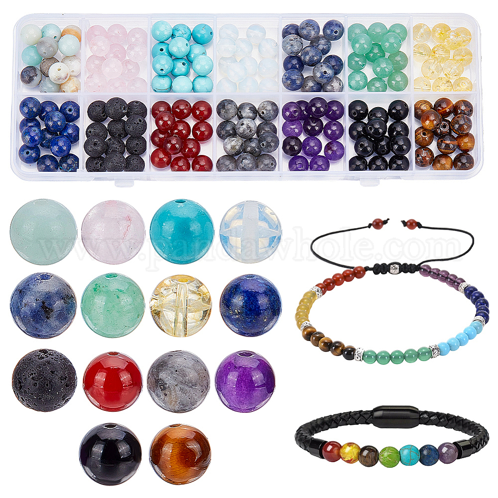 168шт 14 стили наборы бусин из смешанных драгоценных камней, круглые, смешанные окрашенные и неокрашенные
