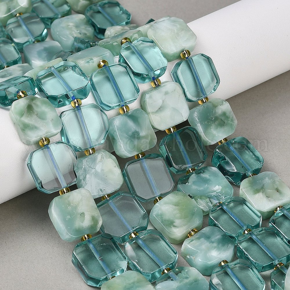 Бусины из натурального стекла, квадратный, с бисером