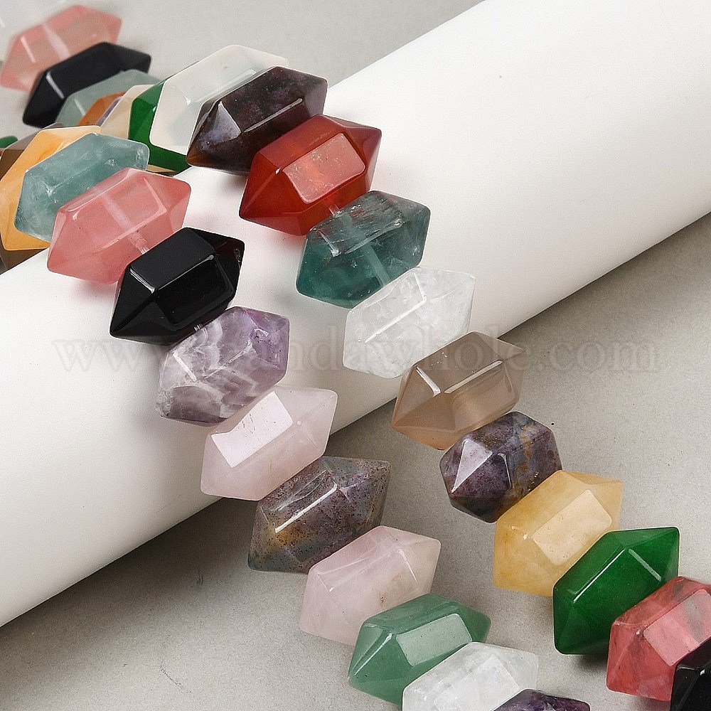 • Смешанные камни Нити бусин из натурального смешанного камня с двойными концами, кусковая пуля, граненые, смешанные окрашенные и неокрашенные, 20x11x10 мм, отверстие : 1 мм, около 20 шт / нитка, 7.99'' (20.3 см)