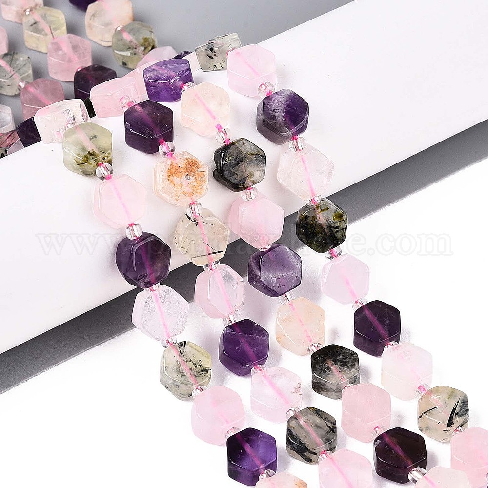 • Смешанные камни 3 стили нити из натурального розового кварца, пренита и аметиста, шестиугольник, с бисером, 8~10x8~10x4~5 мм, отверстие : 0.9~1 мм, около 18~19 шт / нитка, 7.68~8.07'' (19.5~20.5 см)
