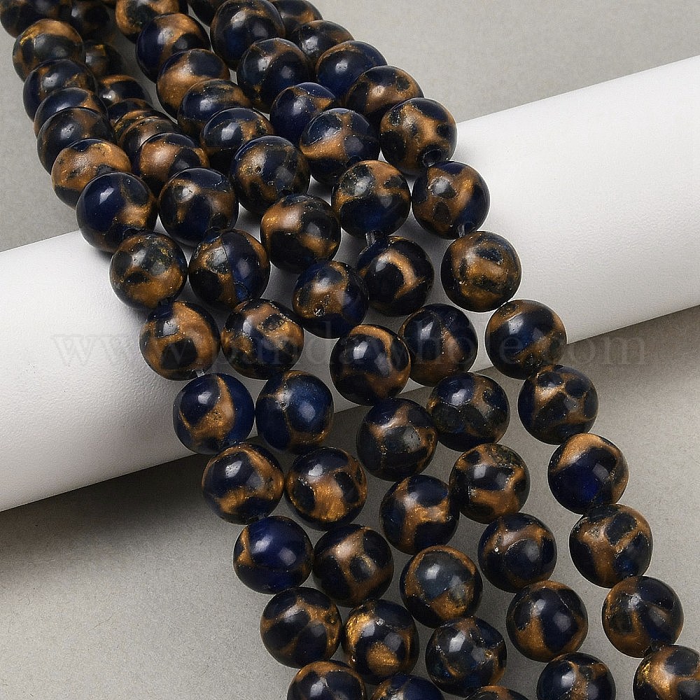 Синтетический золотой клинкер камень бисер пряди, окрашенные, круглые