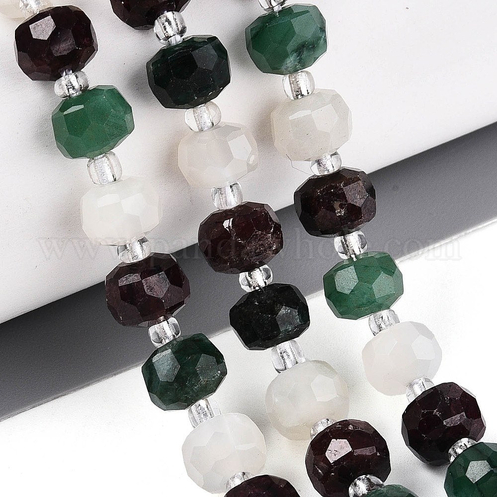• Природный Драгоценный Камень Нити бусин из натурального фуксита, граната и белого лунного камня, рондель, граненые, 5~6x7~8 мм, отверстие : 0.8~1 мм, около 24 шт / нитка, 7.48~7.68'' (19~19.5 см)
