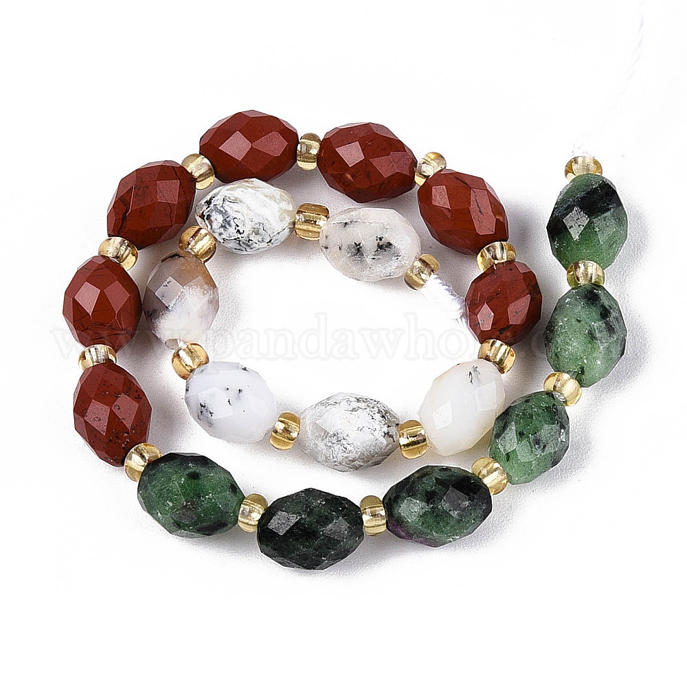 • Природный Драгоценный Камень Нити бусин из натурального рубина в цоизите, красной яшме и цветочном опале, рис, граненые, 8x6 мм, отверстие : 0.9~1 мм, около 19 шт / нитка, 7.32~7.56'' (18.6~19.2 см)