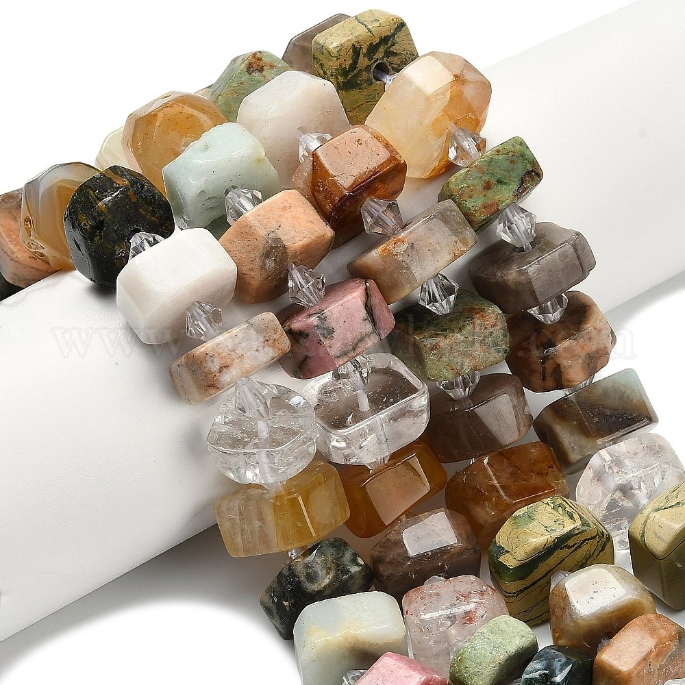 Нити бусин из натурального желтого гематоидного кварца, белого лунного камня, кварцевого кристалла, зеленого опала, многолунного камня и родонита, самородки, граненые, с пластиковой бисера