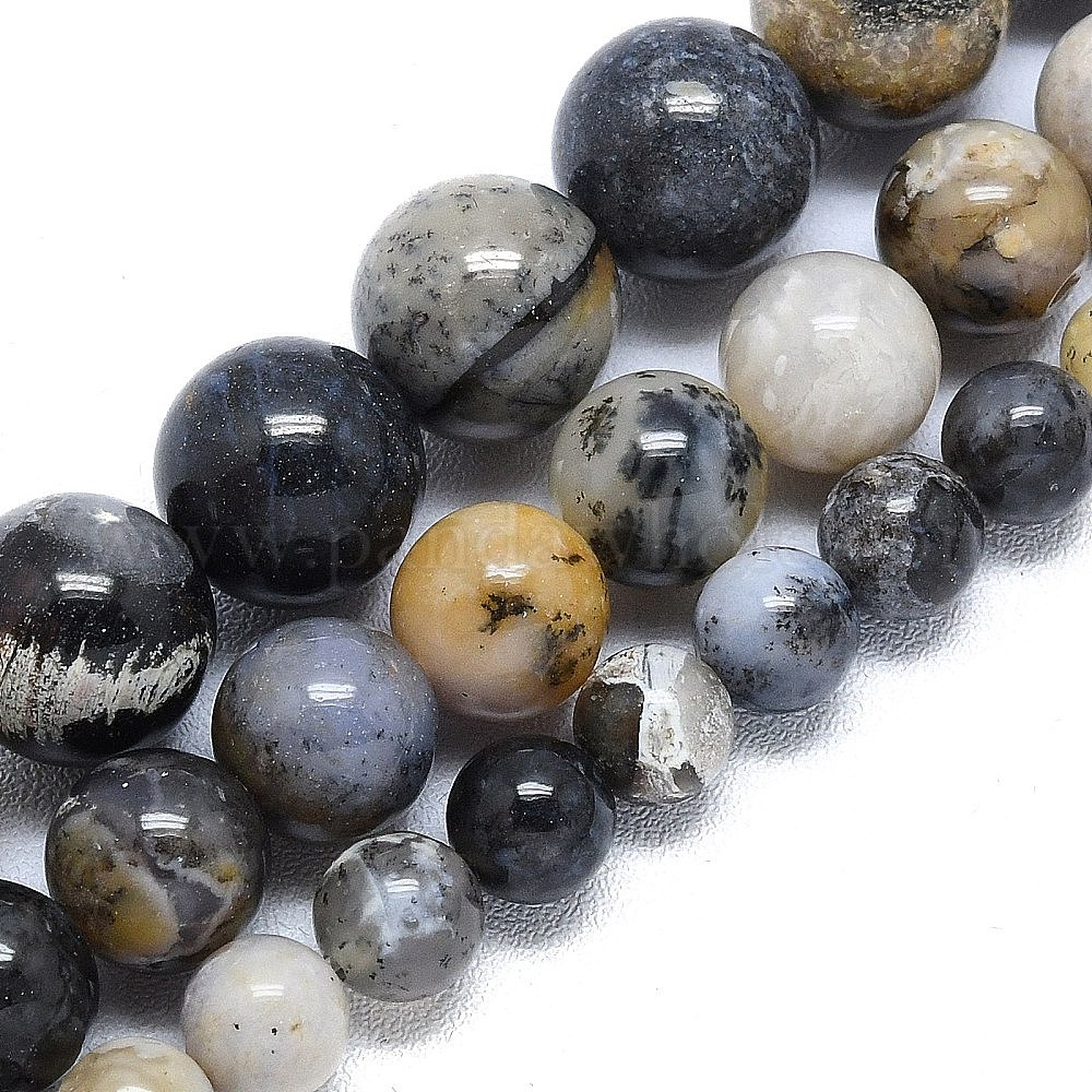 Натуральные дендритные опаловые бусины нити, круглые