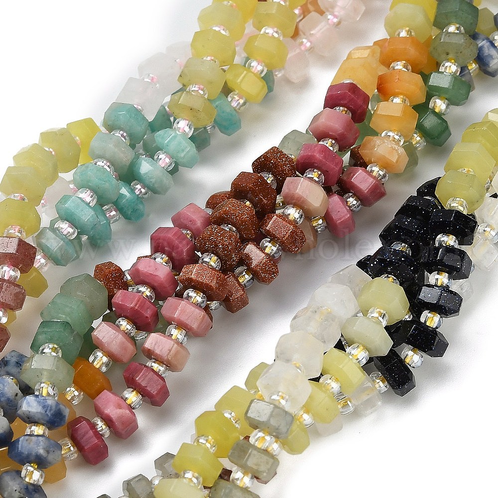 • Смешанные камни Нити бусин из синтетического синего авантюрина, натурального желтого авантюрина, лабрадорита, кварцевого кристалла, лимонного нефрита, клубничного кварца и унакита, градиент цвета, граненые, шестиугольник, с бисером, 6x6x3 мм, отверстие : 0.7 мм, около 70 шт / нитка, 14.88~14.96'' (37.8~38 см)