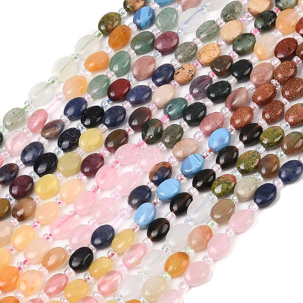 Cmешанные драгоценный камень бисер нитей, Плоско-овальные, с бисером