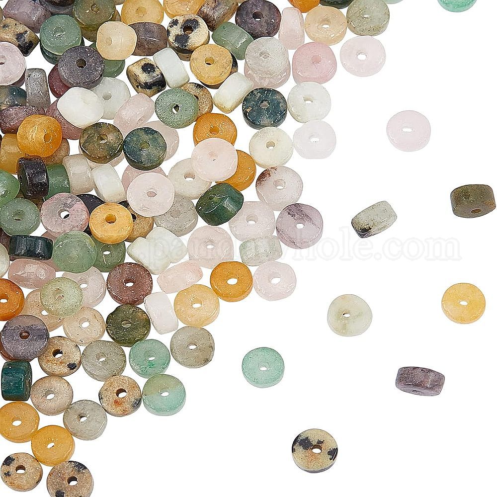 плоские круглые / дисковые бусины из натуральных драгоценных камней: диаметр 4.5 мм, толщиной 2.5~3.8 мм , отверстие : 0.8 мм, 8 материалы, 20 ПК / материал, 160 шт;