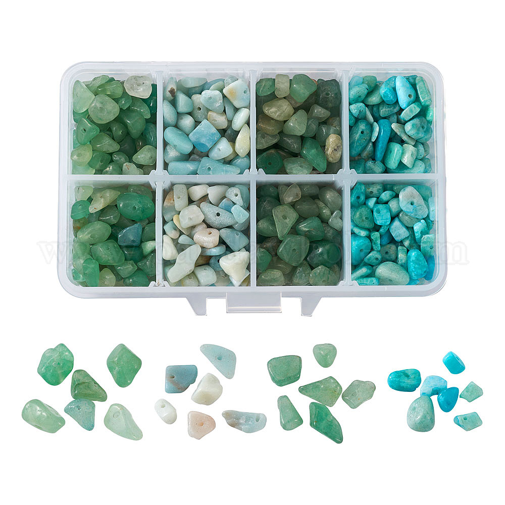 • Смешанные камни Бусины из натурального зеленого авантюрина и амазонита, чипсы, 5~8x5~8 мм, Отверстие: 1мм, 180g / коробка