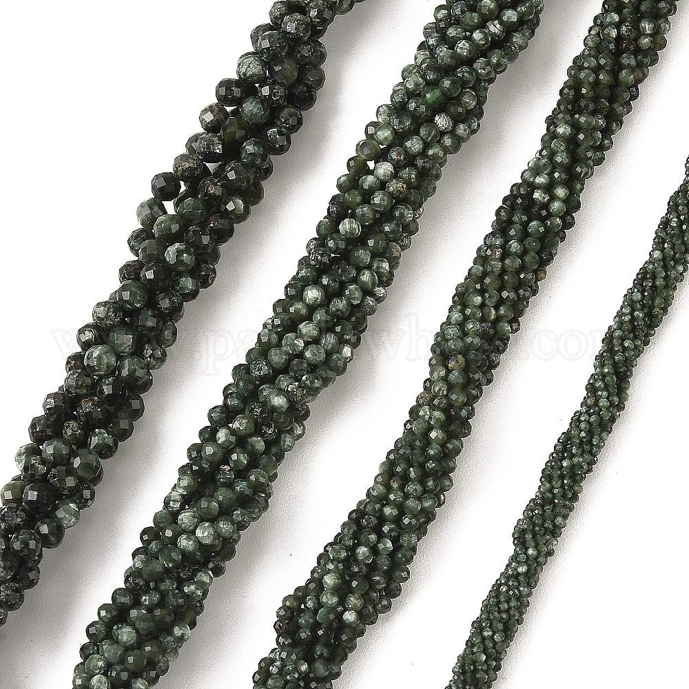 • Серафинит Природные SERAPHINITE нитей бисера, граненые, круглые, 3 мм, отверстие : 0.7~0.8 мм, около 125~127 шт / нитка, 14.76''~15.04'' (37.5~38.2 см)