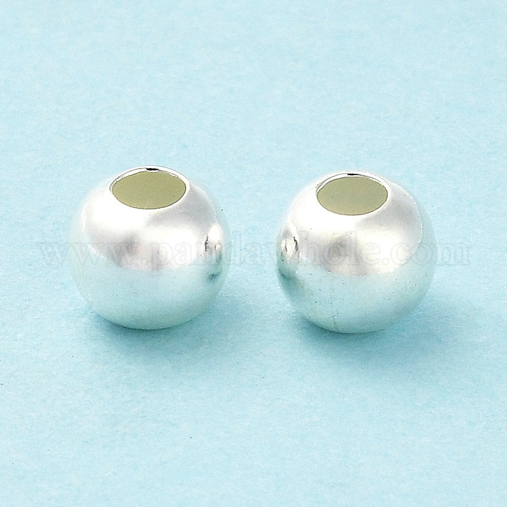 • Серебро 925 шарики стерлингового серебра, круглые, серебряные, 6x5 мм, отверстие : 2.2 мм