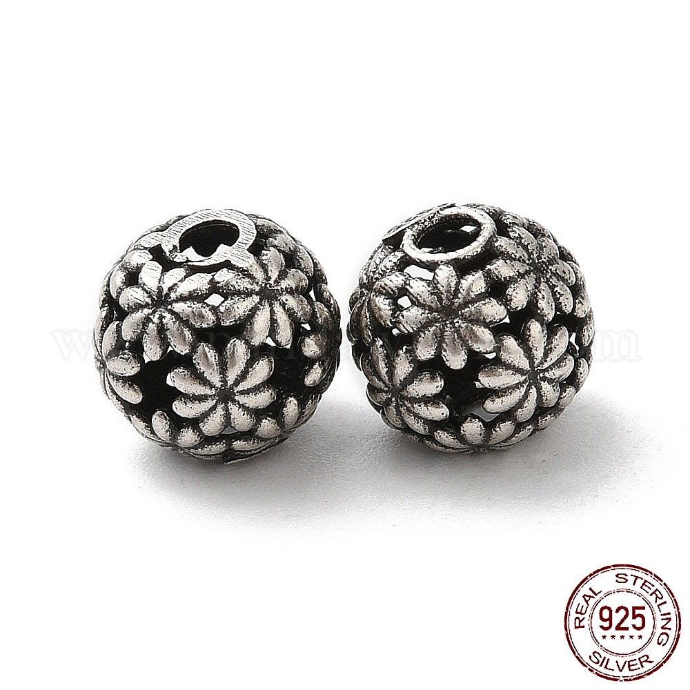 925 шарики стерлингового серебра, полый круглый с цветком, с печатью s925