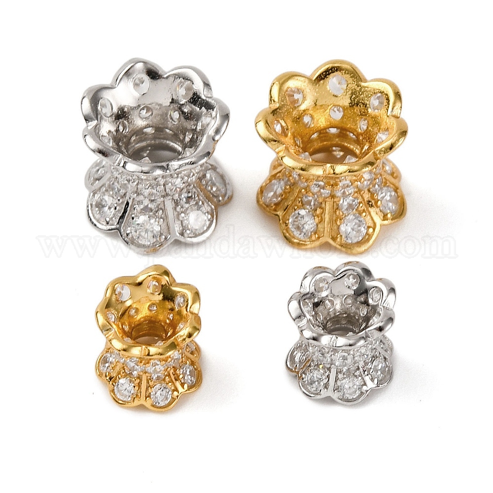 925 бусины из стерлингового серебра с микропаве, прозрачные бусины из кубического циркония, цветок