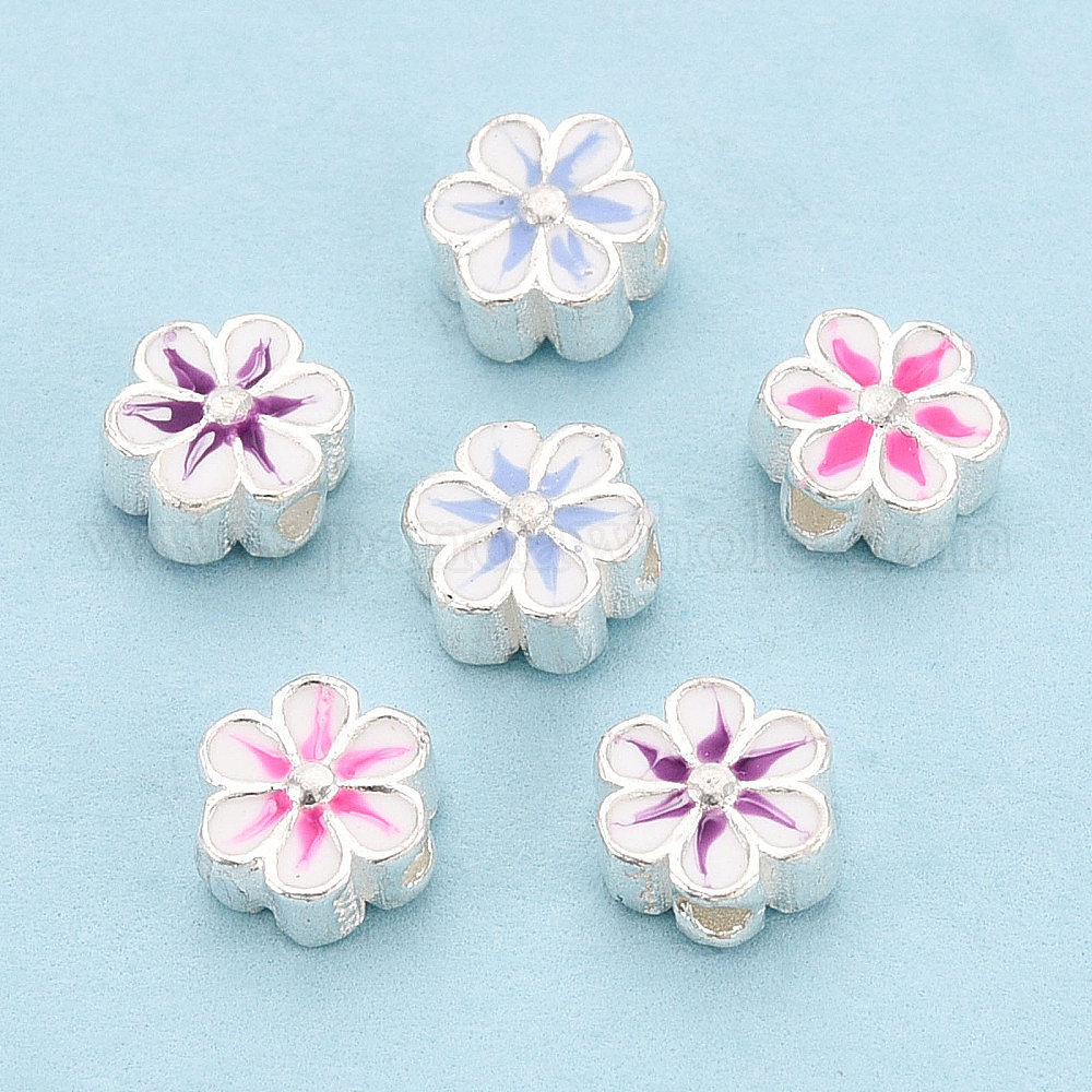 925 бусины из стерлингового серебра с эмалью, цветок, серебряный цвет гальваническим