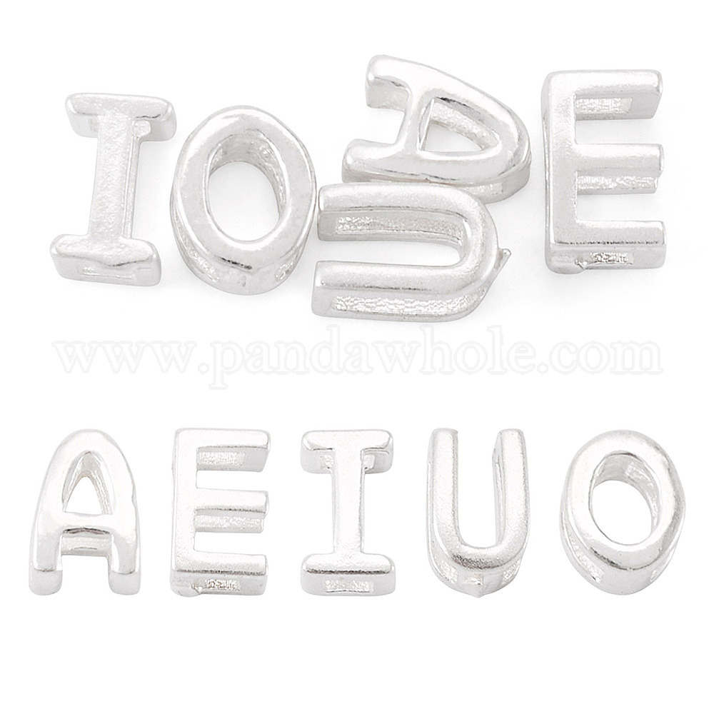 5шт. 5 стили 925 полые бусины с инициалами из стерлингового серебра, серебряный цвет гальваническим (036PD2)