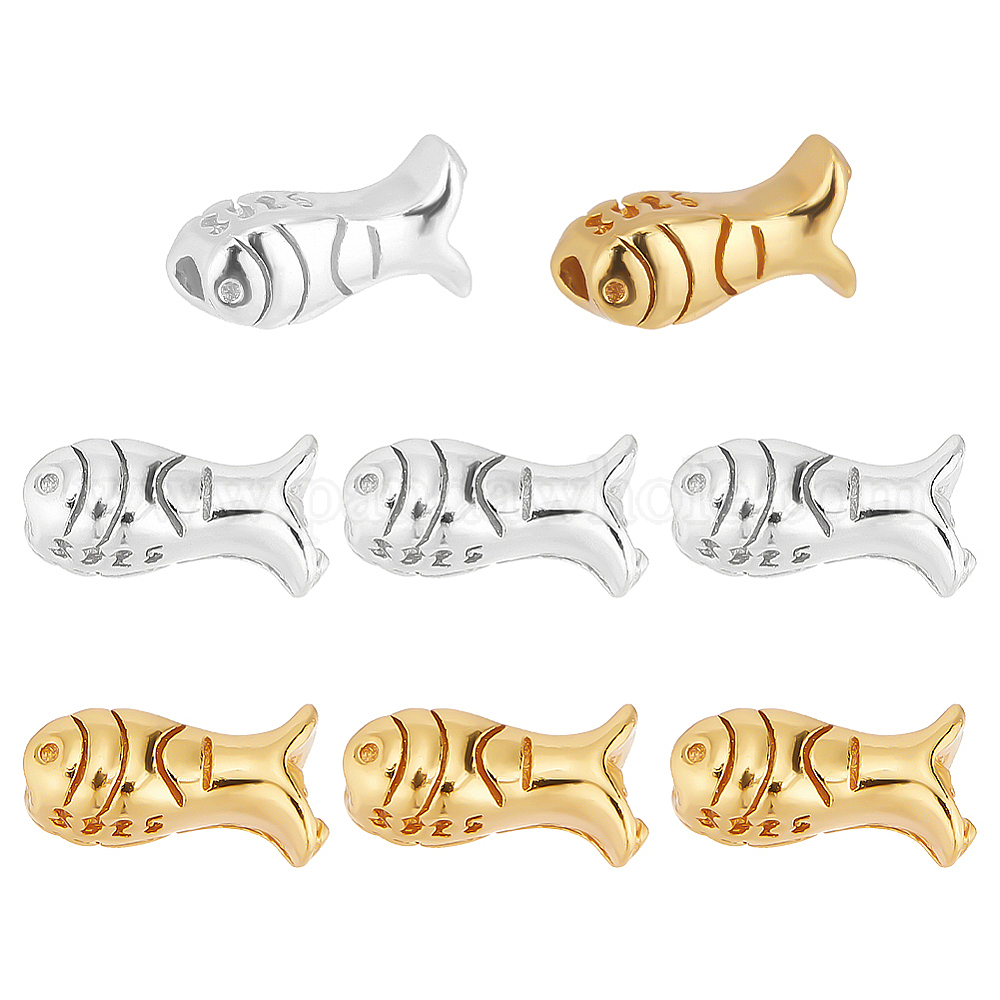 8шт. 2 цвета 925 бусины из стерлингового серебра, рыба, с печатью 925