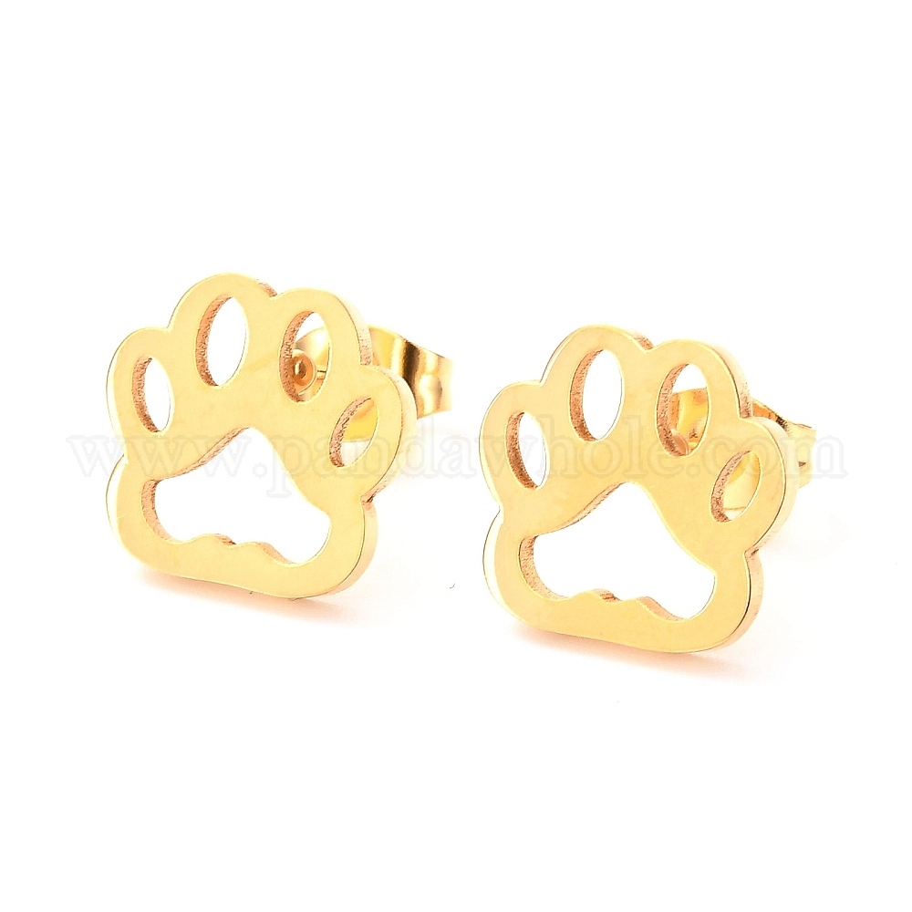 Ионное покрытие (ip) 304 серьги-гвоздики из нержавеющей стали, собака отпечатки лап