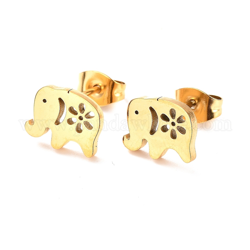 Ионное покрытие (ip) 304 серьги-гвоздики из нержавеющей стали, слон