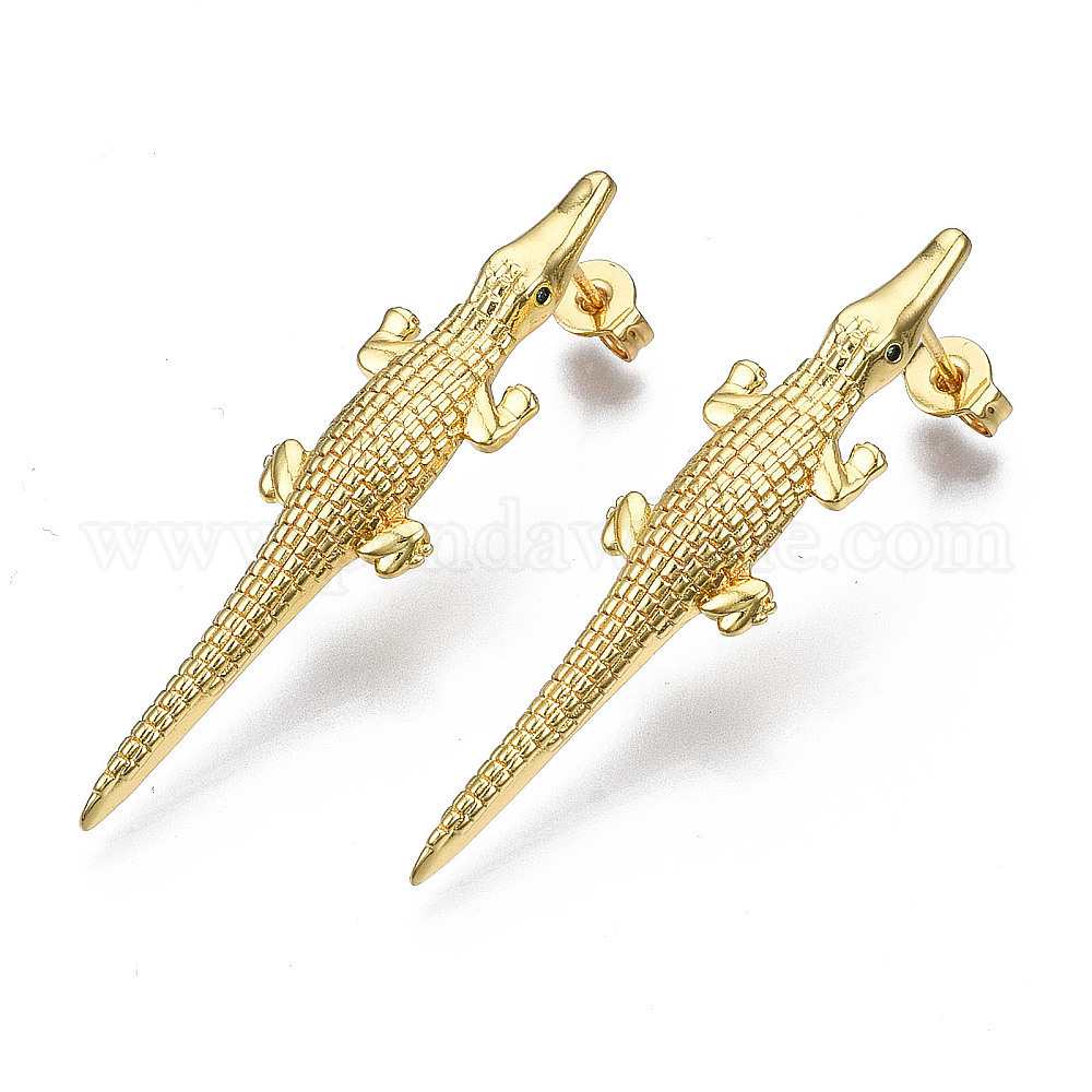 Серьги-гвоздики с прозрачным фианитом из крокодиловой латуни с микропаве, долговечный, без кадмия, без никеля и без свинца
