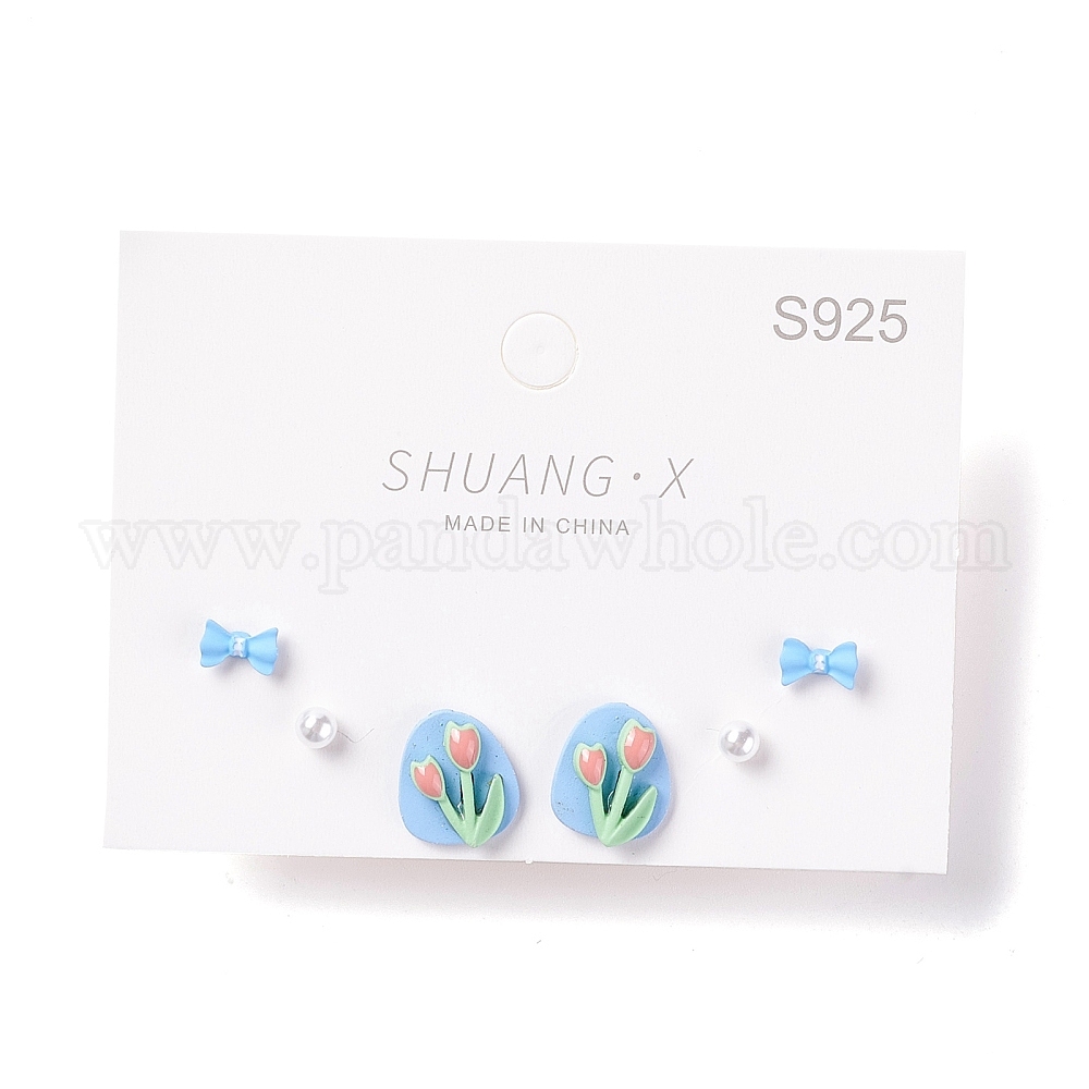 Набор серег-гвоздиков с тюльпанами, бантом и круглыми эмалевыми серьгами из смолы для девочек и женщин, с 925 булавками из стерлингового серебра