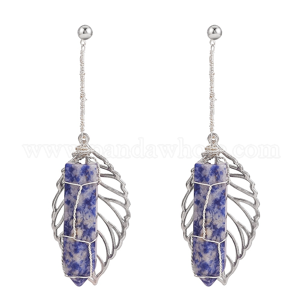 Серьги-гвоздики с подвесками из натурального содалита, ювелирные изделия с драгоценными камнями в проволоке для женщин, цвет нержавеющей стали (02C5MP)