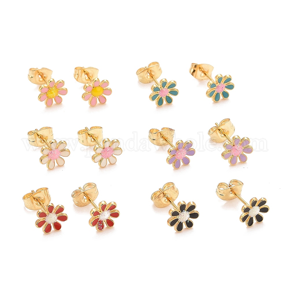 304 серьги из нержавеющей стали эмаль, с 316 булавкой из хирургической нержавеющей стали и блестящей пудрой, золотые, цветок ромашка