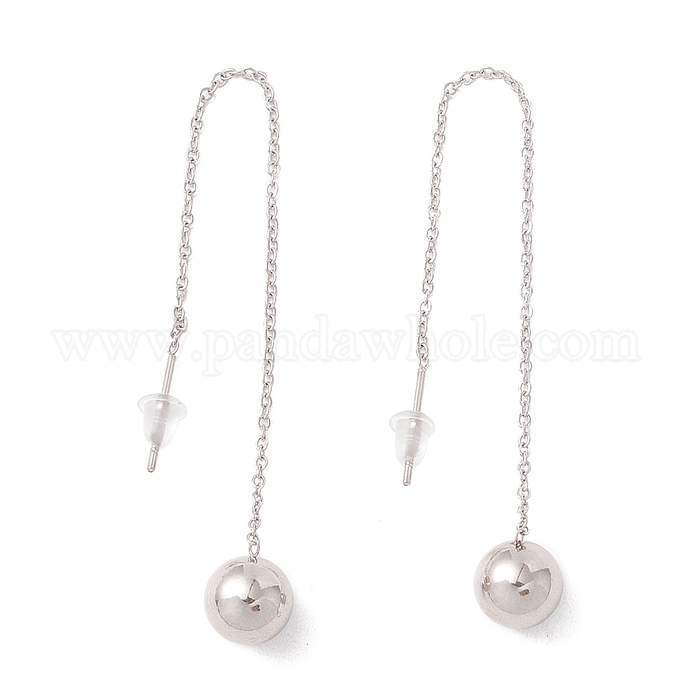 Длинная цепочка с серьгами-гвоздиками с круглыми шариками, PVD-покрытие, вакуумное напыление 304 Серьги-гвоздики из нержавеющей стали для женщин