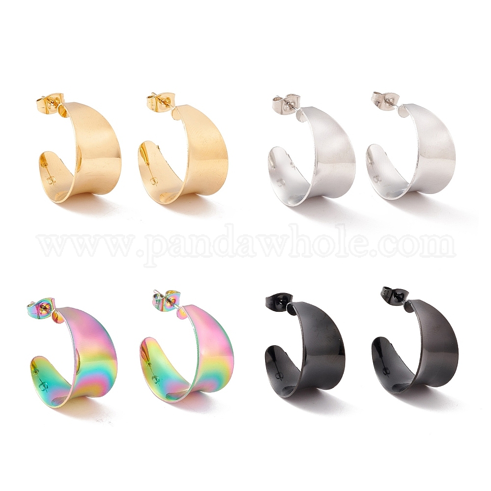 304 массивные серьги-гвоздики в форме буквы «С» из нержавеющей стали, полукруглые серьги для женщин