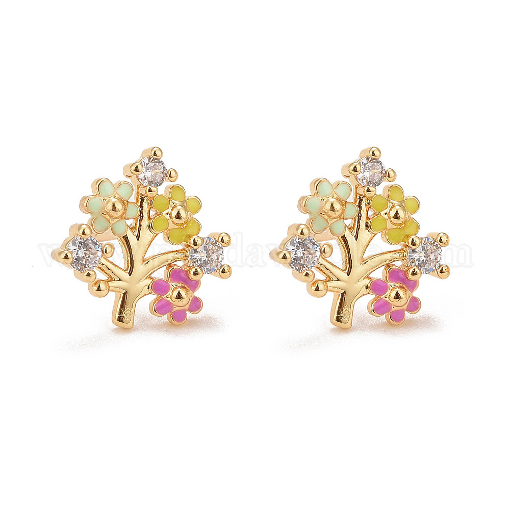 Серьги-гвоздики "Цветок жизни" с разноцветной эмалью и фианитами, стеллаж для латунных украшений для женщин, без кадмия и без свинца