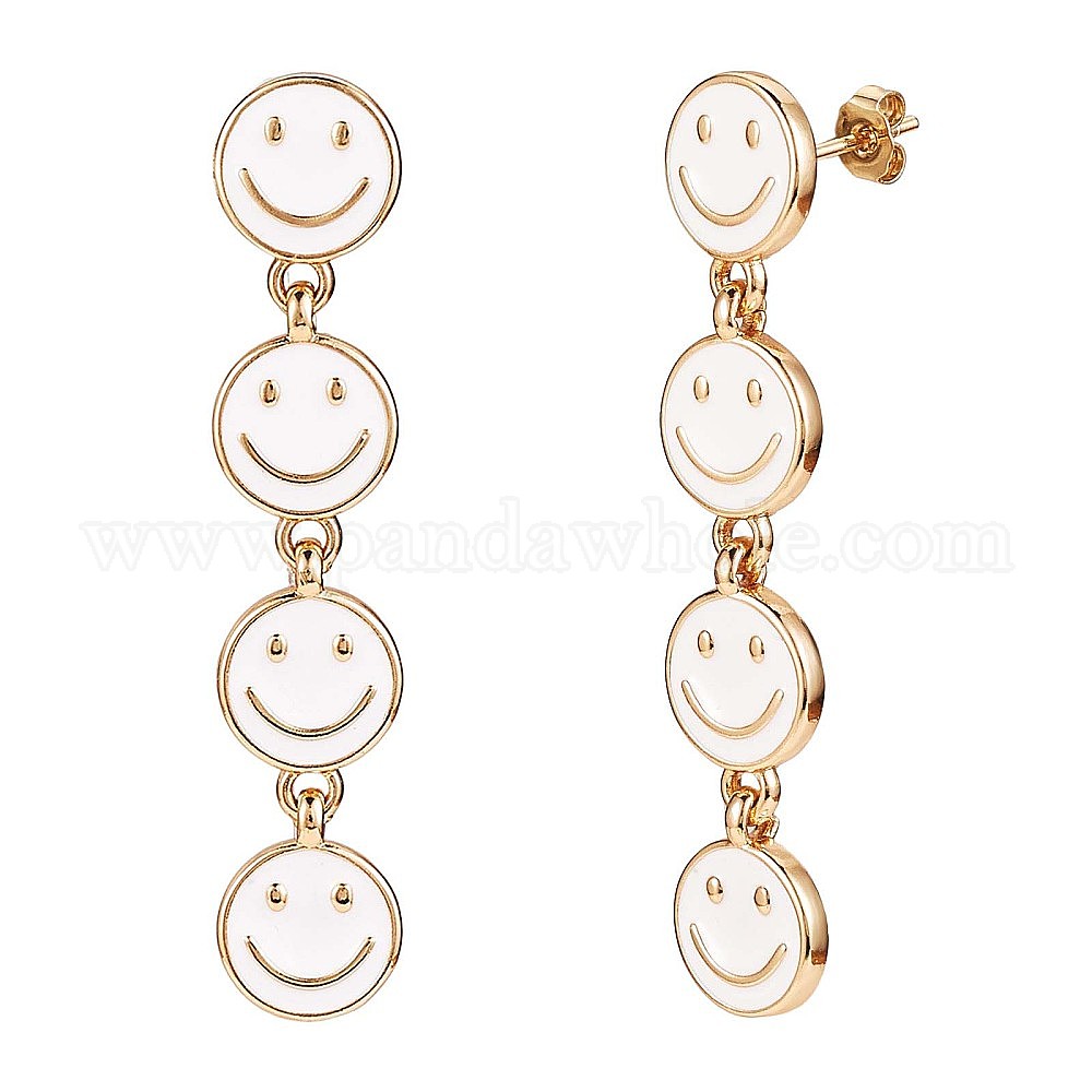 Серьги-гвоздики с эмалью и улыбающимся лицом, длинные серьги-капли из позолоченной латуни для женщин